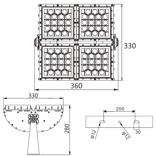 燈具尺寸: L360、W330、H280MM