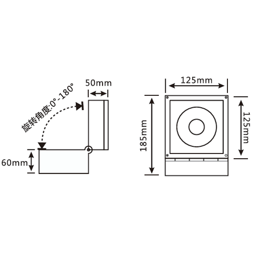 燈具尺寸: L125、W125、H185MM