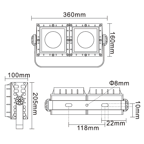 燈具尺寸: L360、W100、H205MM