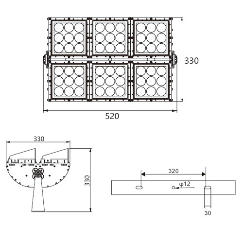 燈具尺寸: L520、W330、H330MM