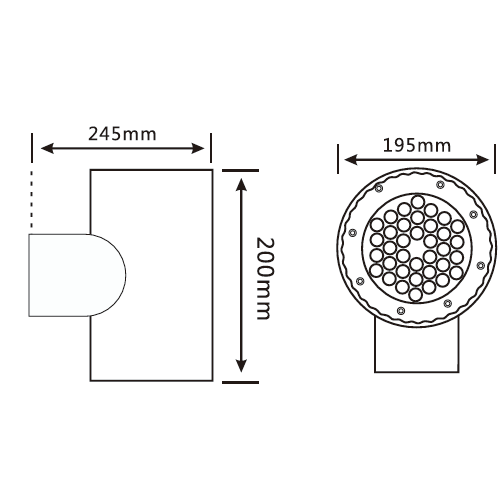 燈具尺寸: Ø195、W245、H220MM